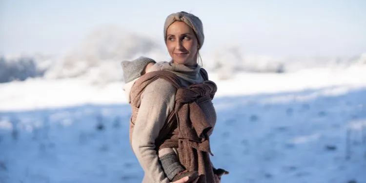 Une écharpe de portage ou un porte-bébé vous permet d’emmener bébé facilement partout où vous allez. Mais comment faire quand il neige ? Il ne fait pas trop froid pour bébé ? Non, si vous optez pour une veste de portage, qui vous permettra de porter bébé dehors quel que soit le temps. Il vous suffit d’utiliser le bon insert, d’enfiler votre veste et voilà ! Cela vous permet de garder bébé tout près de vous et bien au chaud sans avoir à l’habiller davantage. L’insert de la veste pouvant s’installer à l’avant ou bien dans le dos, vous pouvez choisir le nouage et la position que vous souhaitez, de l’enveloppé-croisé au kangourou dos. Vous pouvez même utiliser la veste sans insert, pour continuer à la porter après la fin du portage. Nos vestes de portage sont également utilisables pendant la grossesse afin de vous éviter des achats supplémentaires. Plutôt pas mal, n’est-ce pas ? Vous pourrez retrouver davantage de conseils et astuces sur le portage en hiver dans notre rubrique « Tout sur le portage ».
